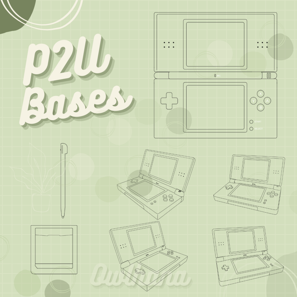 I used some photos of my own DS Lite to make these. I've seen some cute art of the Nintendo DS systems, so i thought it would be fun to have as a base. Definitely going to use these for some adopts >:3 Plus, I did make an old base for my twitch page but ended up making a newer one and this one looks a lot cleaner? I might use it as a overlay for when I play some old ds games :3