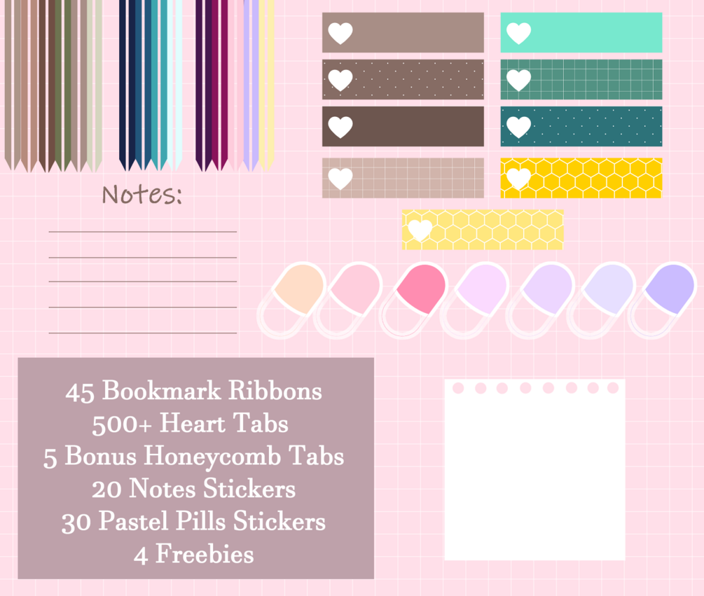 ★ Heart Tabs (578) ; Plain, Polka Dots, and Grid