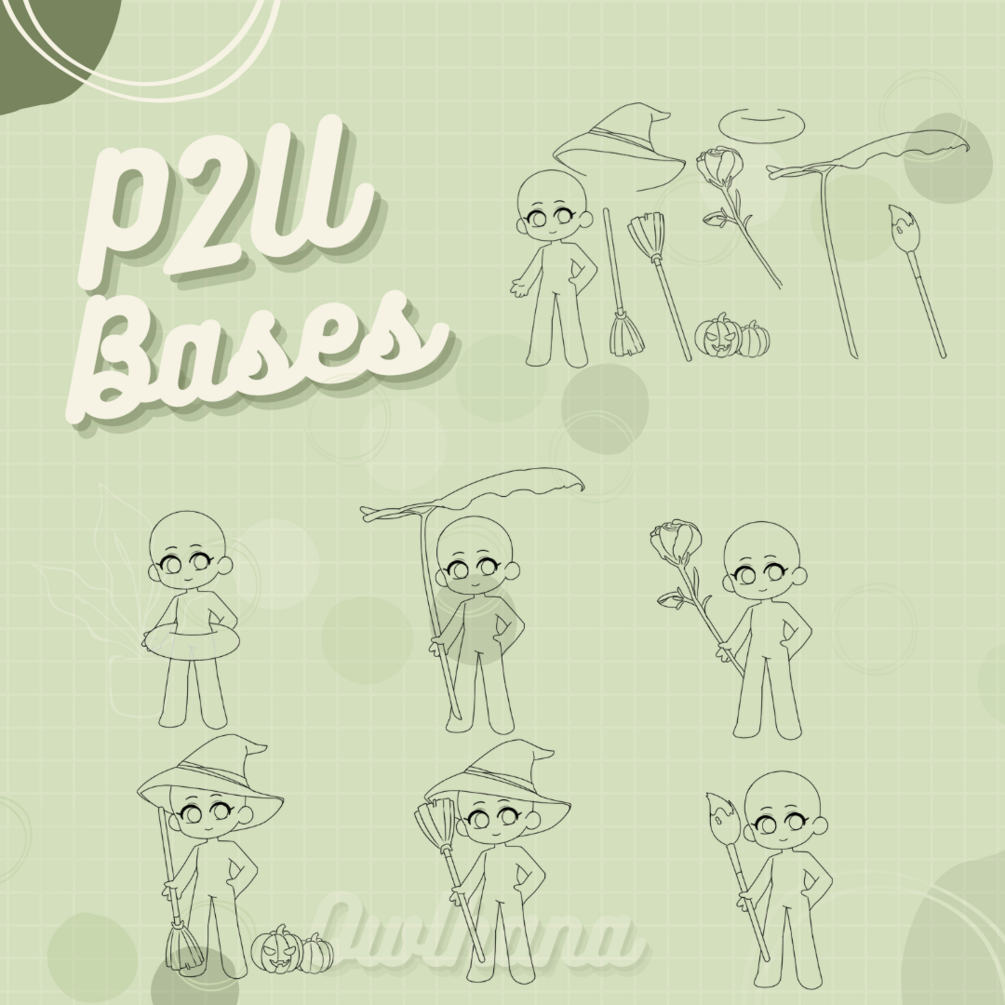 ★ Pumpkins, jack-o-lanterns, leaf umbrella, witch hat, inner tube / floaty, flower staff, broom, and paint brush accessories!